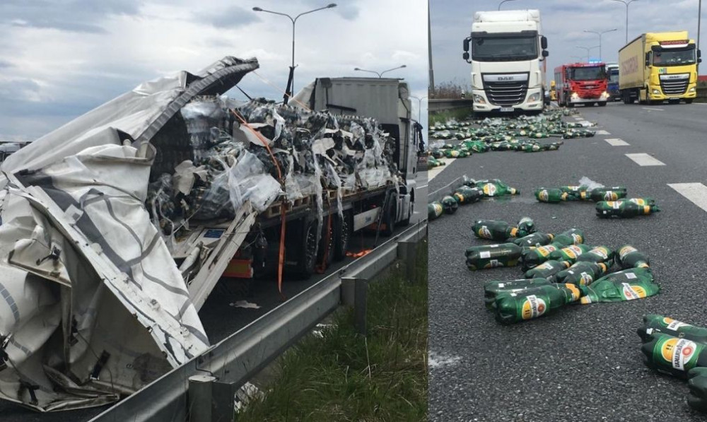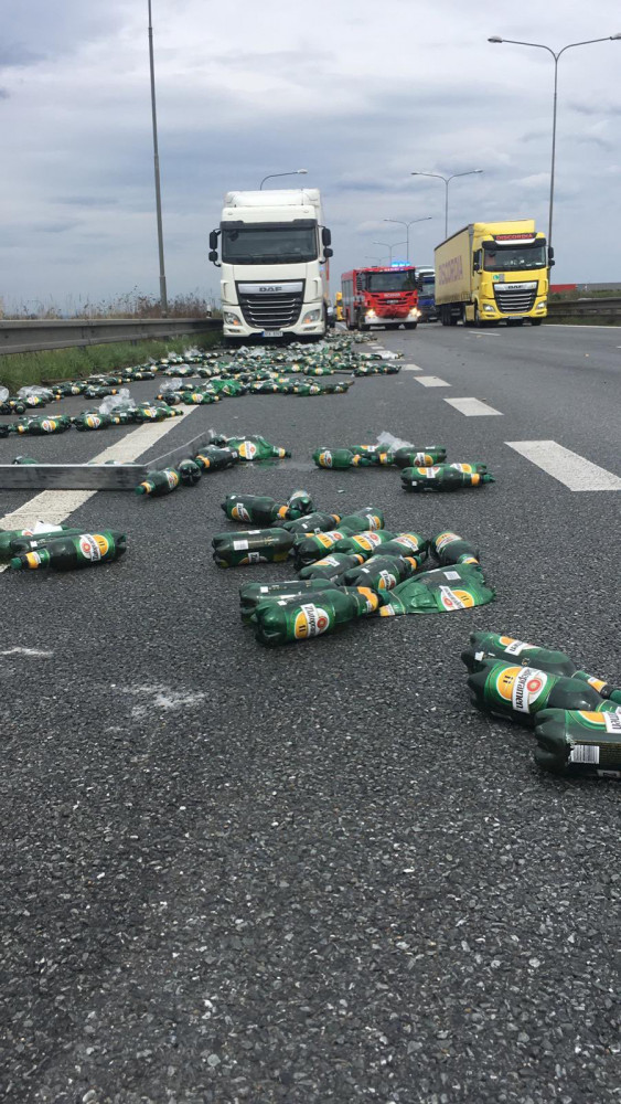 V Praze havaroval kamion. Na dálnici se rozsypaly lahve piva