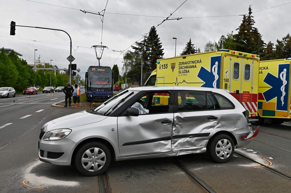 Dva zraněné při dnešní nehodě v Praze museli z aut dostat hasiči, pak zasahovali záchranáři