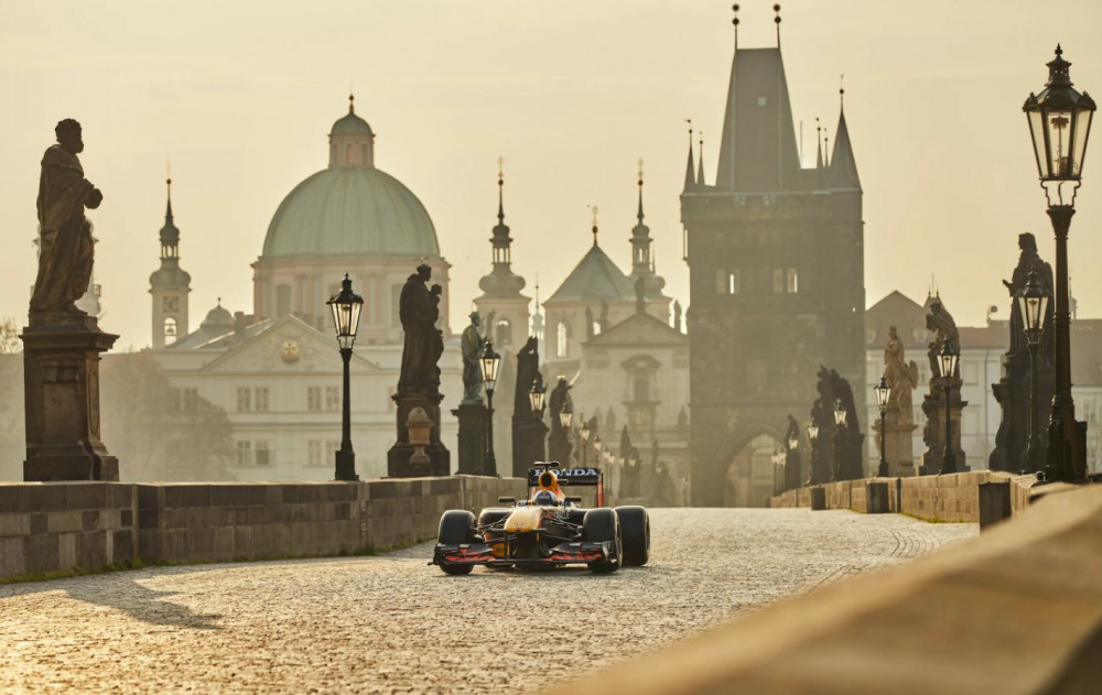 Red Bull zveřejnil reklamu s formulí na Karlově mostě. Podívejte se