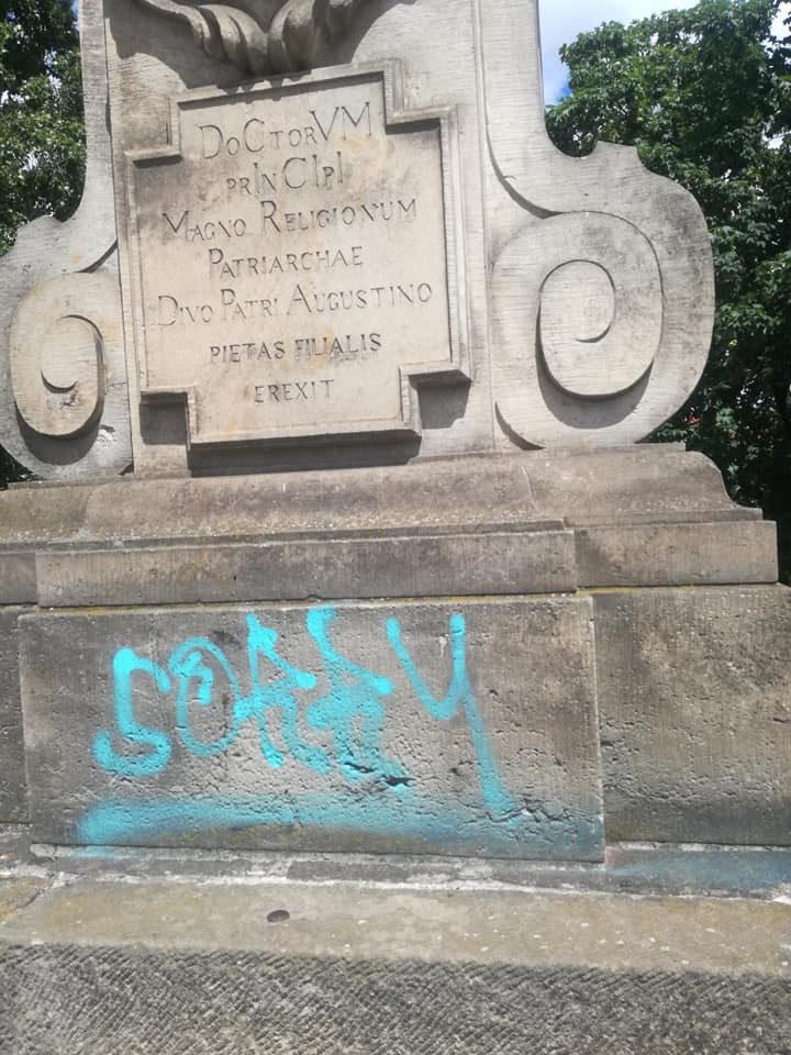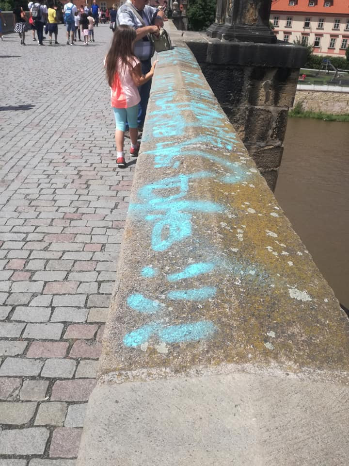 Vandal posprejoval Karlův most. Poničil zábradlí i sochu
