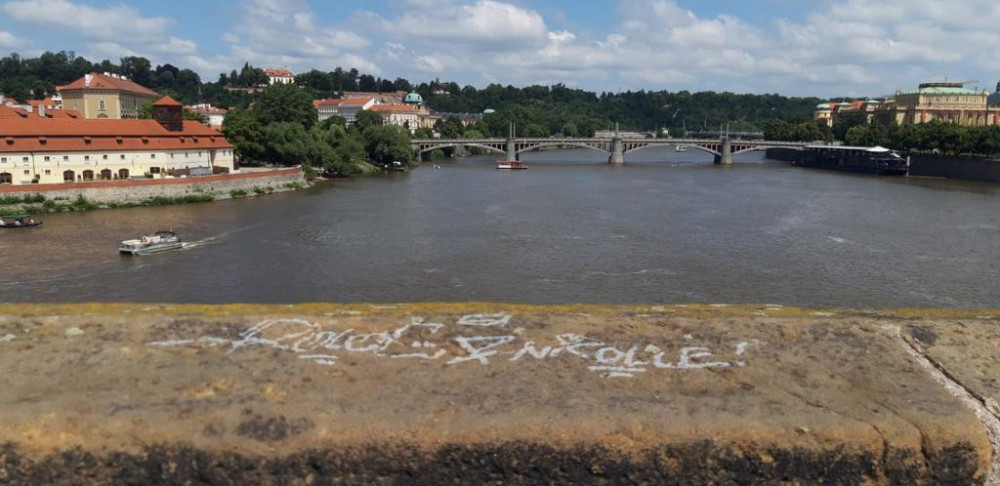 Vandal opět posprejoval Karlův most. Policie hledá svědky