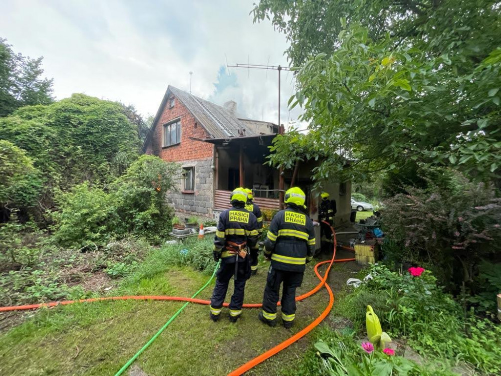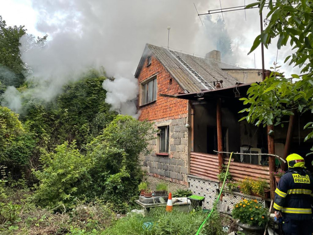 Při dnešním požáru rodinného domu v Praze hasiči našli ohořelé lidské tělo