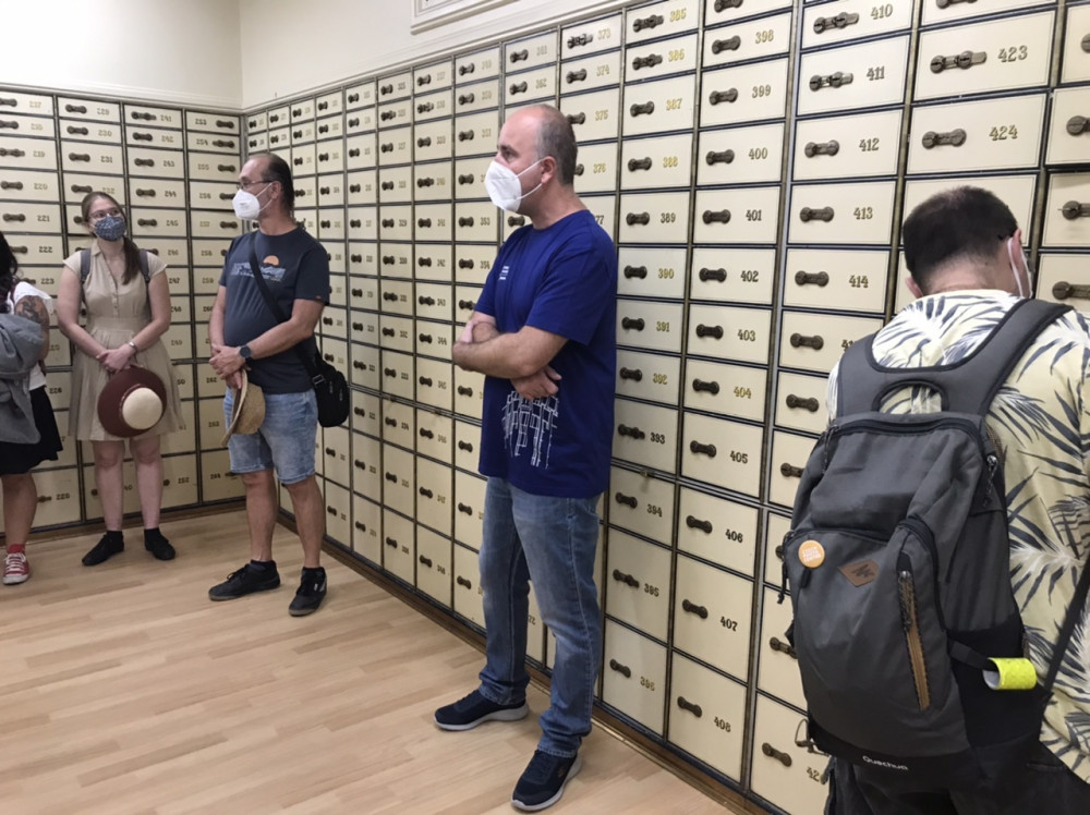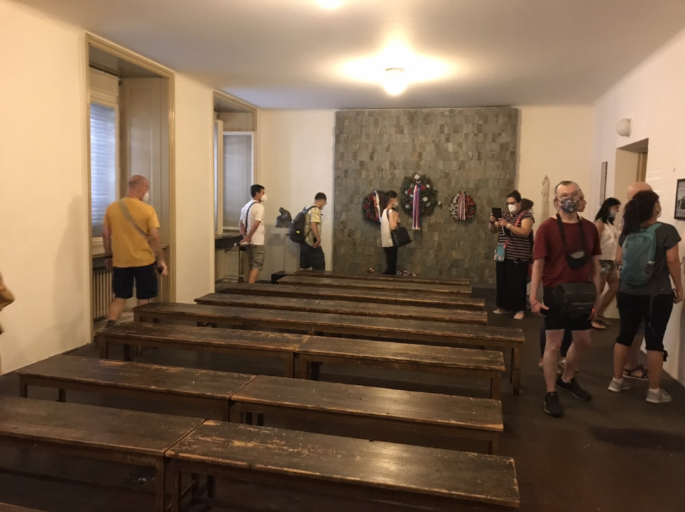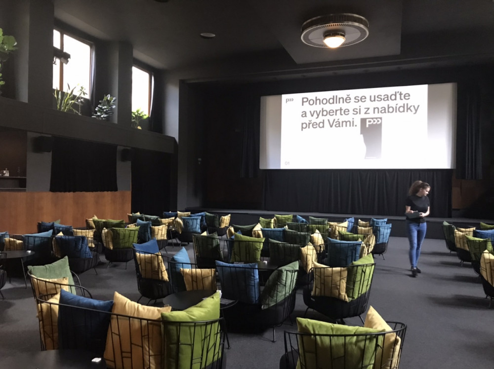 takzvaný biograf v Petschkově paláci, kde vězni čekali na výslechy dlouhé hodiny