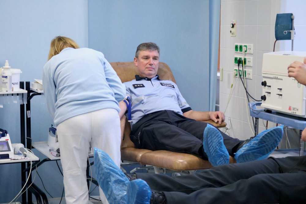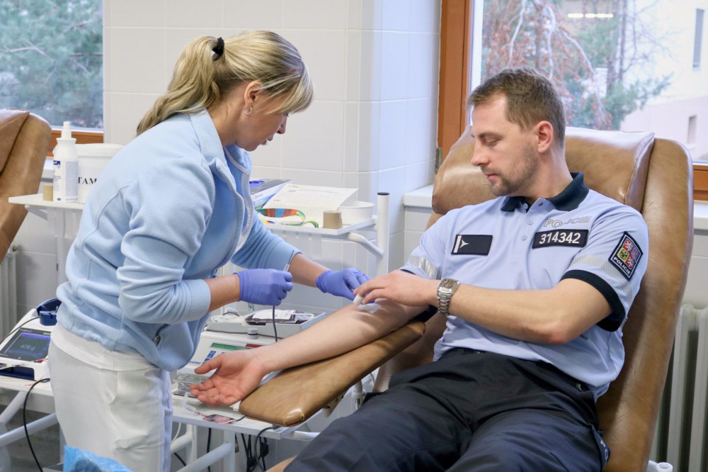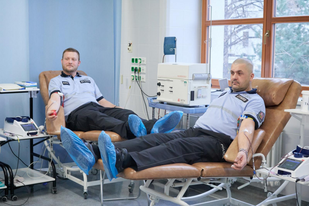 FOTO: Pražští policisté darovali krev. Navštívili transfuzní stanici ve Střešovicích