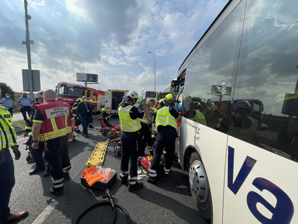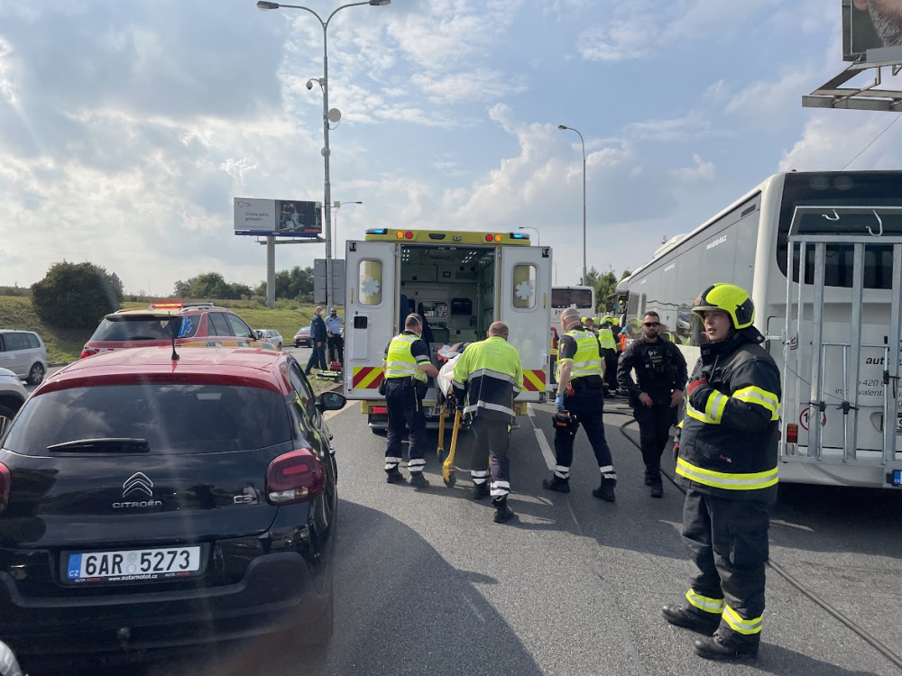 Vážná nehoda dvou autobusů uzavřela silnici ve směru na Pražský okruh