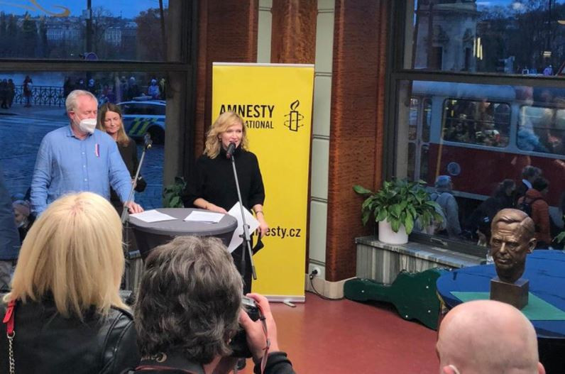 V kavárně Slavia slavnostně odhalili bustu Václava Havla za účasti Dagmar Havlové