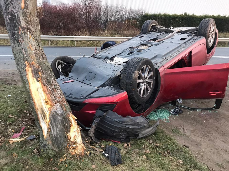 Vážná nehoda na hlavním tahu do Prahy. Osobní automobil skončil na střeše.