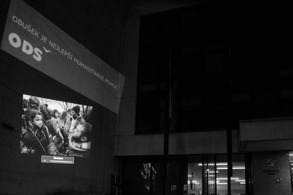 Aktivisté promítali fotky z polsko-běloruské hranice na budovu ministerstva. Vadí jim vyjádření ODS