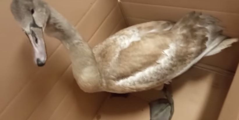Mládě labutě sedělo uprostřed silnice. Kvůli jeho záchraně volalo strážníky téměř padesát lidí