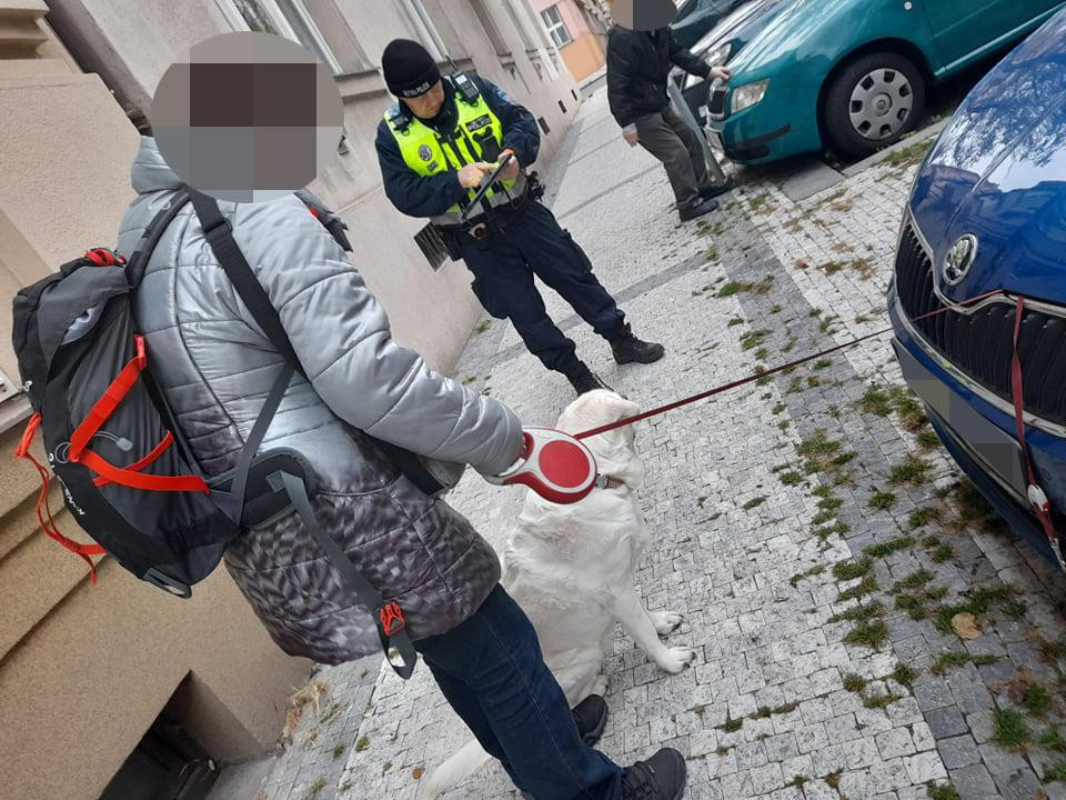Pejskařka v nesnázích. Vodítko zasekunuté pod kapotou auta museli vyprostit strážníci