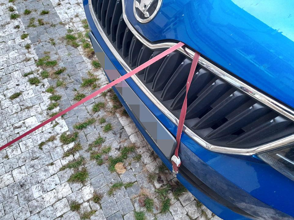 Pejskařka v nesnázích. Vodítko zasekunuté pod kapotou auta museli vyprostit strážníci.