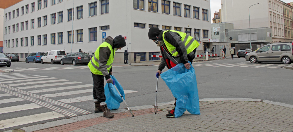 Jakub a Jarda uklízejí v okolí Armády spásy