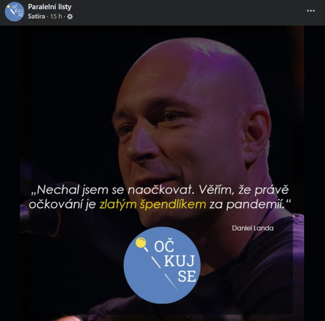 Očkuj se i ty, vyzývá Landa, jde však o fake. Doufáme v žalobu, říkají autoři koláží