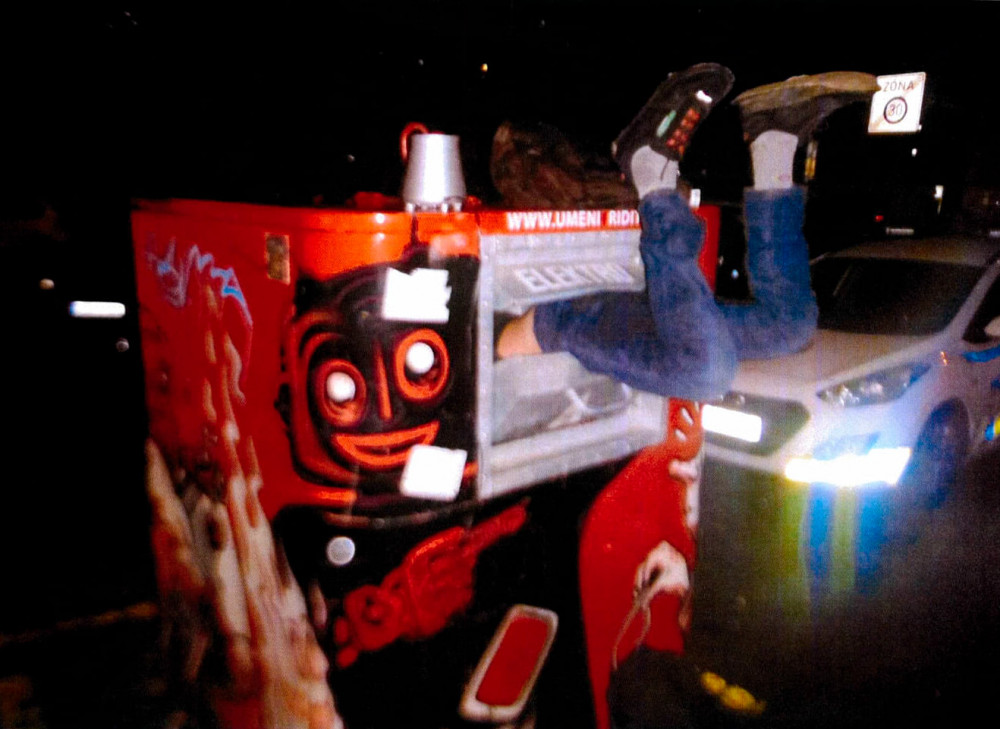 Muž se zasekl v kontejneru, byly mu vidět jen nohy. Vyprostit ho museli hasiči