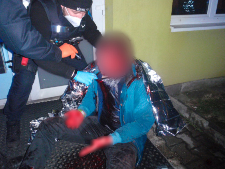 Muž se opil na vánočním večírku. Strážníci ho našli krvácejícího na chodníku a zachránili mu život