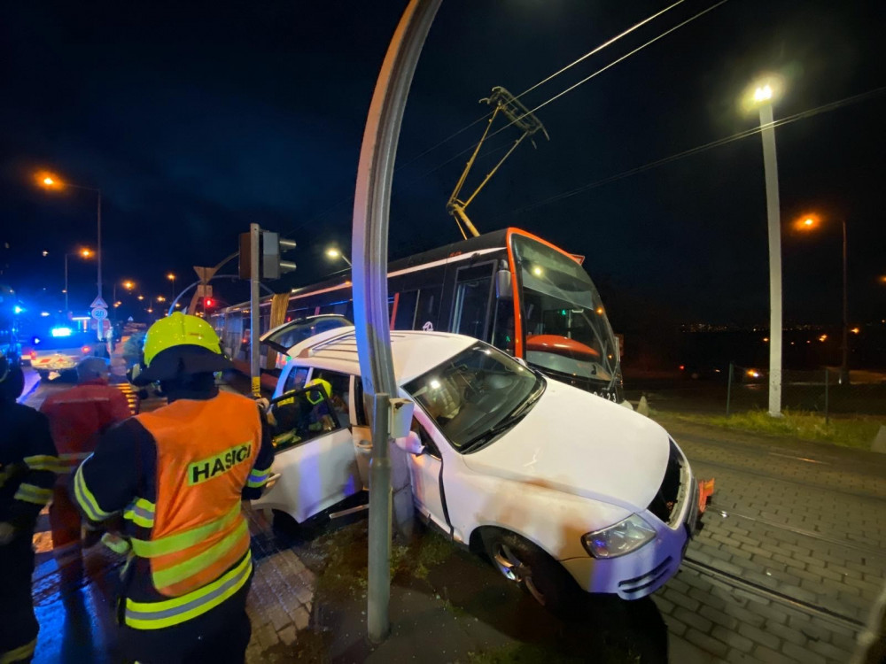 Na Barrandově došlo k dopravní nehodě. Auto se srazilo s tramvají