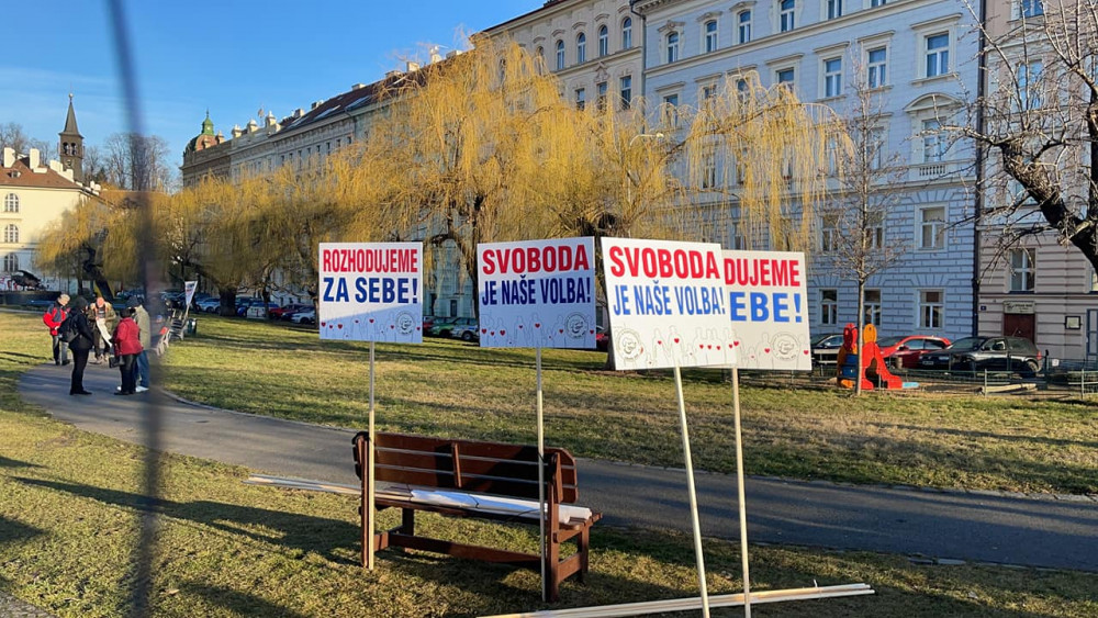 Další protesty kvůli novele pandemického zákona. Na pražském Klárově se sešly desítky odpůrců