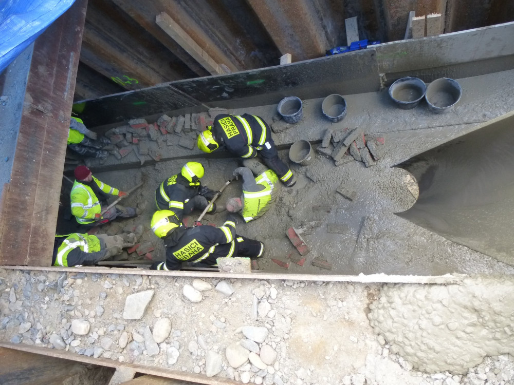 Dva dělníky zalil při práci tekoucí beton. Se zraněními skončili v nemocnici