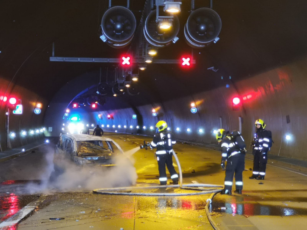 VIDEO: Komořanský tunel zablokovalo hořící auto. Jeden člověk zemřel, další jsou zraněni