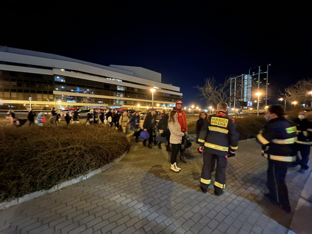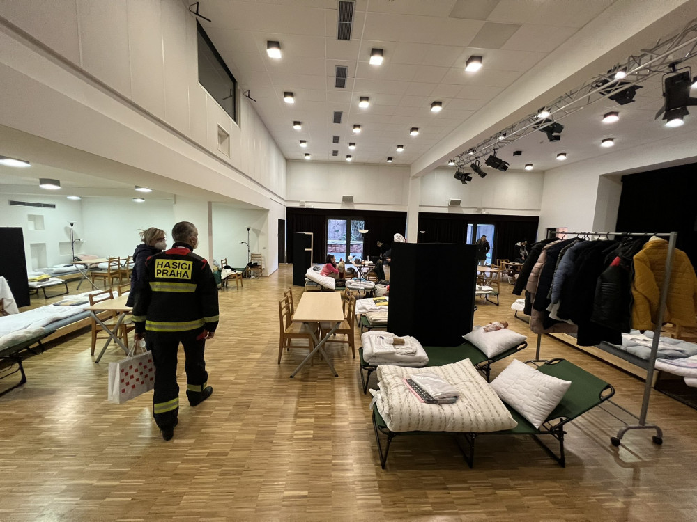 Hasiči převáželi první uprchlíky do nouzového ubytování po celé Praze