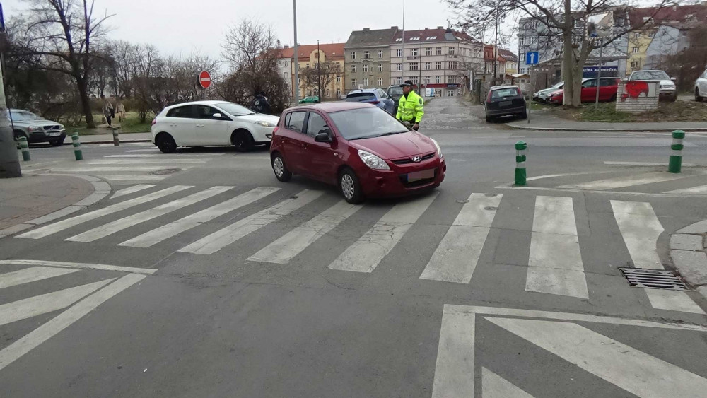 Žena najela do přechodu a zůstala stát.