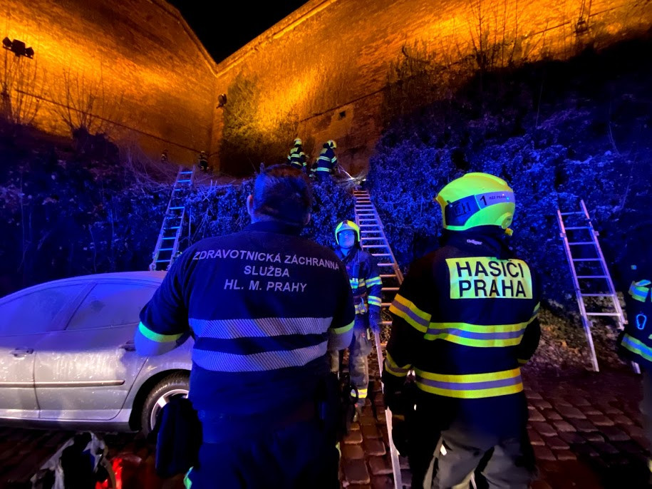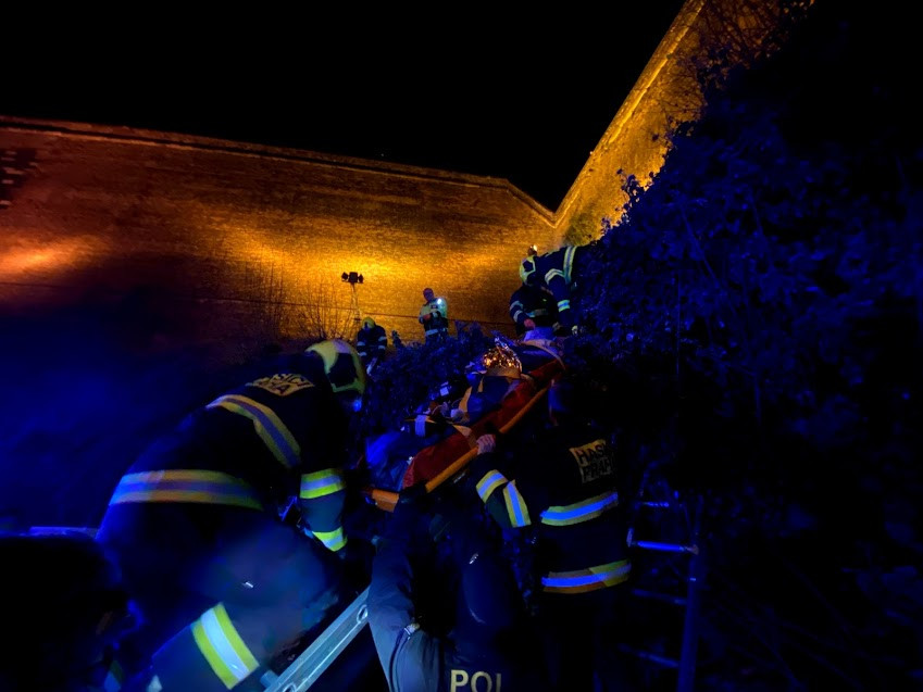FOTO, VIDEO: Z vyšehradských hradeb spadla ve čtvrtek večer žena