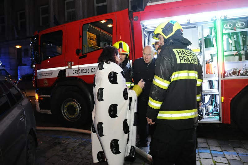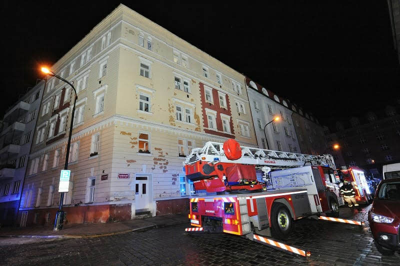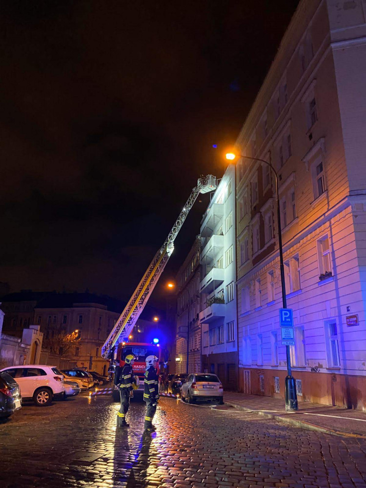 FOTO: Noční požár v Praze 2. Šest lidí skončilo v nemocnici, desítky byly evakuovány