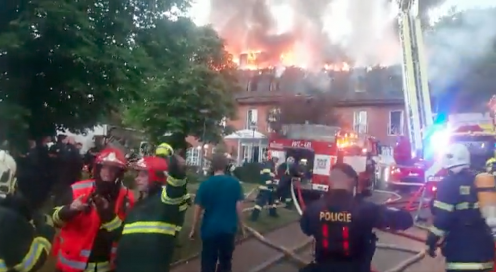 VIDEO: V domově pro seniory u Prahy vypukl požár. Z budovy evakuovali přes padesát klientů