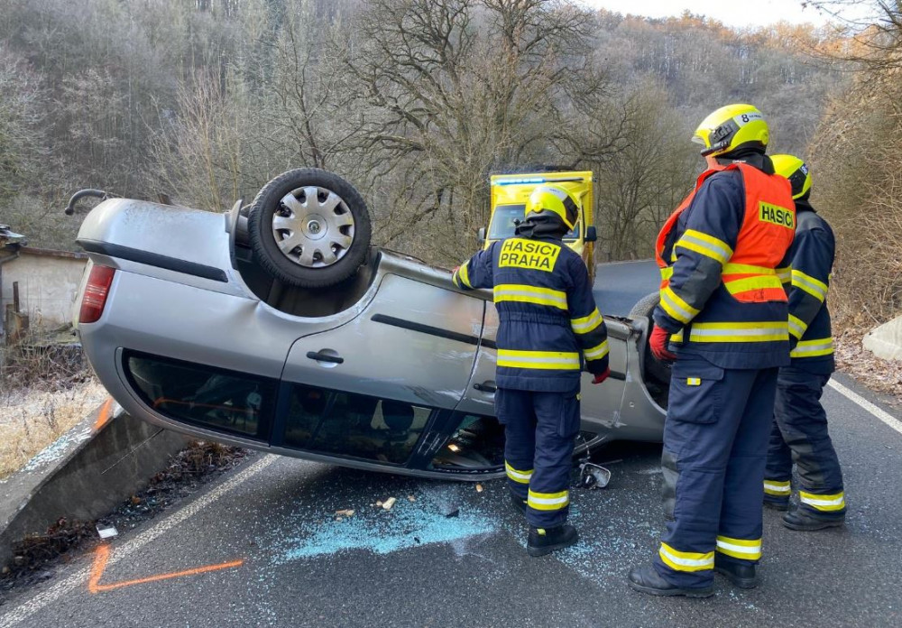 Hasiči zasahovali u nehody, při které auto skončilo na střeše