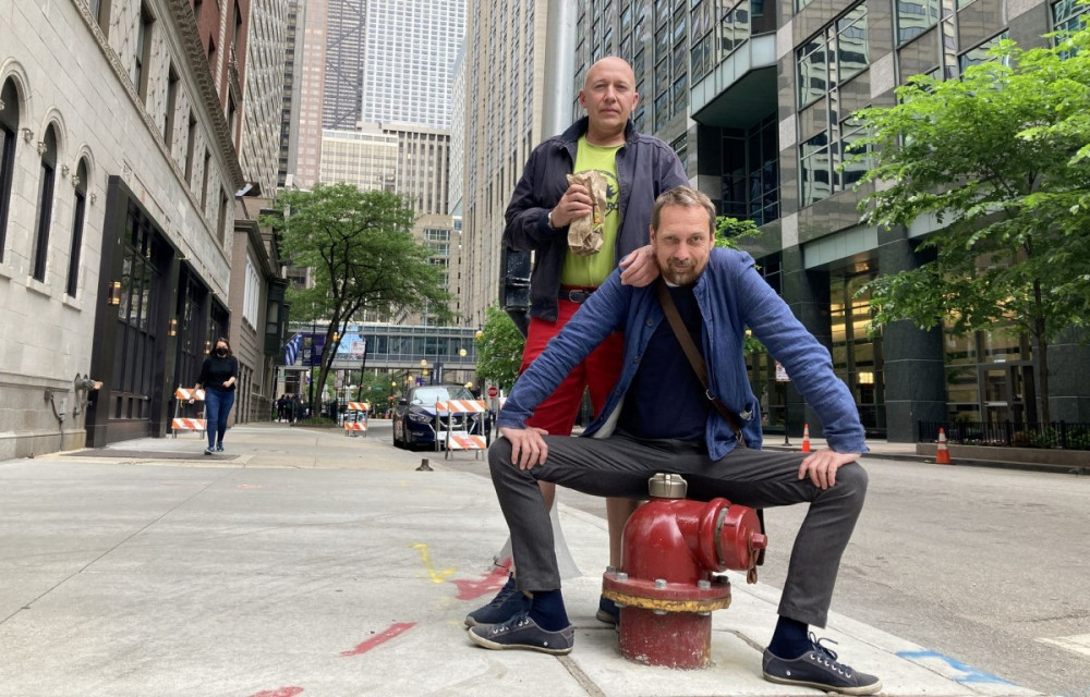 Herci Robert Jašków a Tomáš Pavelka během hostování Švandova divadla v Chicagu