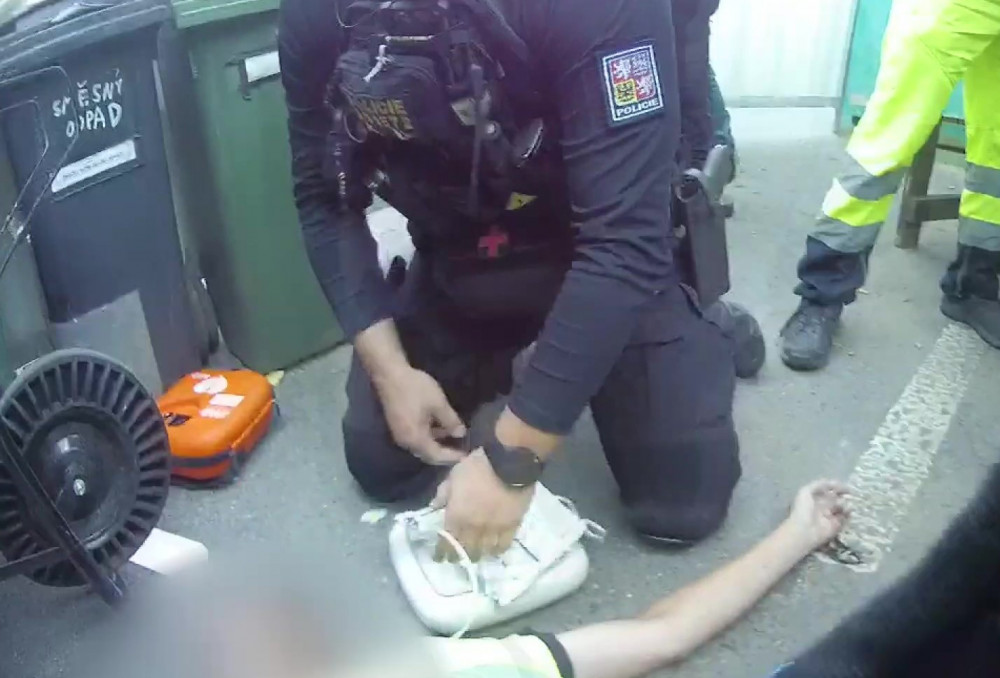 VIDEO: Pražští policisté oživovali dělníka. Zkolaboval na stavbě v Holešovicích