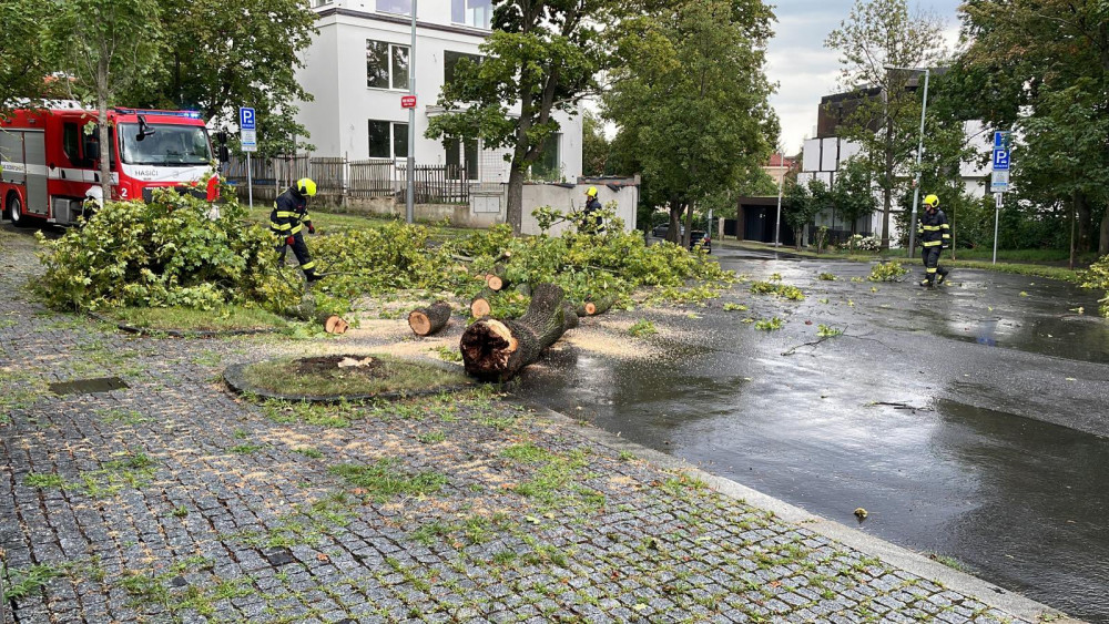 Pád stromu a omezení provozu na letišti. Výstraha před bouřkami platí do večera