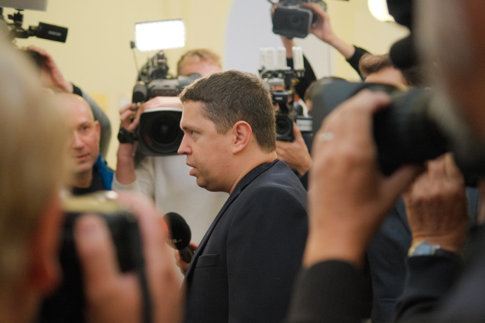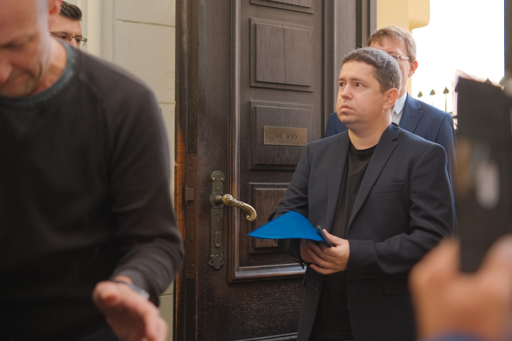 Andrej Babiš při příchodu do budovy soudu.