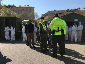„Je tam určité zpoždění,“ říká půl hodiny po desáté hodině mluvčí armády za stanoviště na Náměstí Míru v Praze major Jiří Havel. Na otázku, zda se dostane na všechny, kteří ve frontách na Náměstí Míru čekají, odpovídá diplomaticky. „Kapacita by měla být asi třicet až čtyřicet lidí za hodinu. Testovat se bude na tomto stanovišti do osmi hodin večer.“ Testovací areál na Náměstí Míru stavělo osm lidí. „V součanosti je zde přítomno dalších jedenáct osob z ozbrojených sil,“ počítá major Havel.