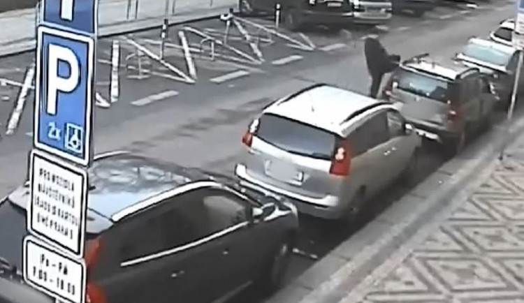 Na kamerovém záznamu je vidět muž, který třinácti autům ukopl nebo utrhl zpětná zrcátka nebo kopanci poškodil části karoserie.