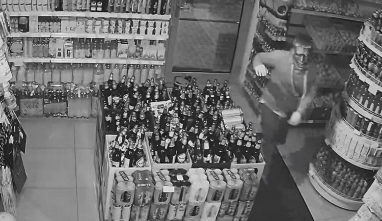 Na záznamech z kamer je podezřelý vidět před samotným vloupáním a následně i v prodejně, kde má na sobě nasazenou masku.