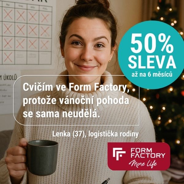 Trénujte naplno a plaťte napůl – Form Factory nyní nabízí 50 % slevu až na šest měsíců ročního členství pro jeden klub. Akce platí do 31. prosince 2025 a vztahuje se také na program ProAge pro studenty a seniory. Na konkrétní podmínky se můžete informovat přímo ve vašem oblíbeném klubu.