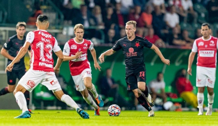 Desátá minuta přinesla také šanci Slavie. Na roh Nica Stanciua si naskočil Ondřej Kúdela, v dobré pozici ale hlavičkoval pouze do prostoru, kde byl připraven brankář Boháč. Ve velké šanci byl po zblokované střele Jana Bořila Stanislav Tecl, který byl sám před brankářem, pálil ale nad branku.