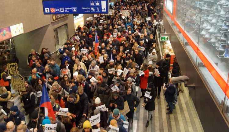Desítky tisíc lidí dnes demonstrovaly v Praze za odstoupení Andreje Babiše (ANO) z funkce předsedy vlády. První, zhruba půlhodinové části protestu na Václavském náměstí se podle policie zúčastnilo 45 až 50 tisíc lidí, organizátoři hovořili nejprve o 60 tisících, posléze o 80 tisících účastnících. Po projevech se část lidí vydala na pochod centrem Prahy na hlavní nádraží. Volali hesla namířená proti Babišovi a v rukou drželi většinou letáky s nápisem "Demisi". Premiér uvedl, že rezignovat nehodlá. Právo lidí demonstrovat respektuje, zkritizoval ale opozici, že jejím jediným programem je antibabiš. Podle policie se akce obešla bez problémů.