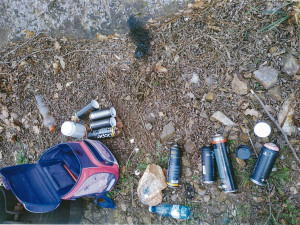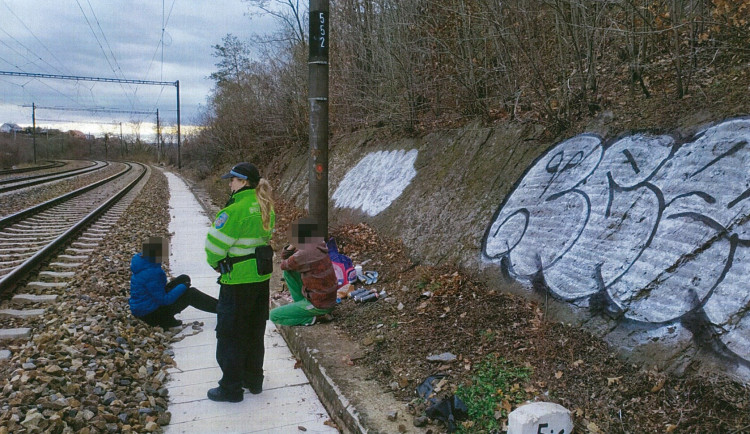Hlídka si všimla dvou osob, které stály ve srázu železničního koridoru u kolejiště a sprejovaly na skalnatý val. Když k nim strážníci přišli, byli oba sprejeři tak překvapeni, že se ani nepokusili o útěk.