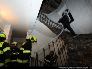 Včera po čtvrt na dvanáct večer došlo k propadu půdy bytového domu v ulici Krásova na pražském Žižkově. Na místě zasahovaly jednotky z centrální, holešovické, strašnické a smíchovské stanice se speciálním vyprošťovacím kontejnerem vybaveným stabilizačním vybavením a chemická služba z Petřin.