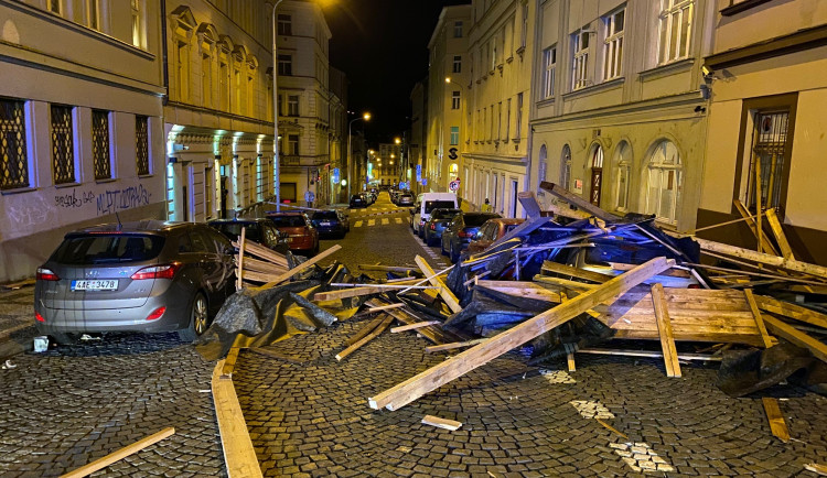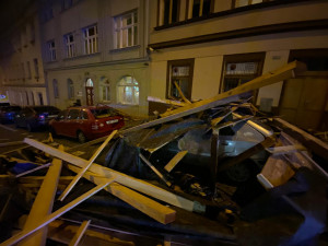 V ulici Cimburkova na Žižkově museli kolem půlnoci zasahovat hasiči kvůli pádu části rozestavěné střechy. Ta se zřítila dolů na silnici a poškodila několik aut. Policisté museli uzavřít ulici, protože hrozilo další nebezpečí pádu trámů a krovů.