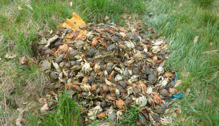 FOTO: V Praze 4 někdo vyhodil u silnice přes sedm set živých krabů. Ti byli pravděpodobně z restaurace