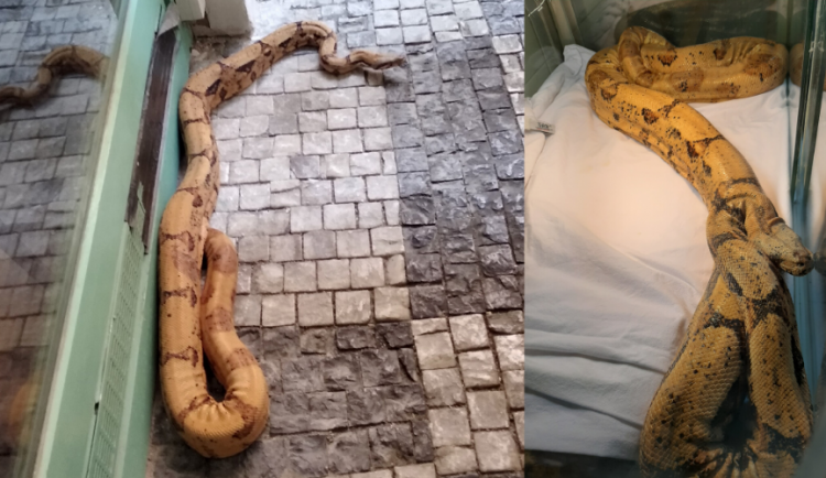 Žena zavolala na tísňovou linku 156, strážníci si na pomoc pozvala kolegy z odchytové služby. „Ošetřovatelé hada ubytovali do vyhřívaného terária, a přestože to není jeho vysněná pasáž, tváří se hroznýš spokojeně a čeká na svého majitele,“ uvedla mluvčí pražských strážníků Irena Seifertová.
