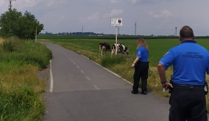 Skupina býků vyrazila z Klánovic do Horních Počernic. Pohybovali se střídavě po poli a po cyklostezce. „Naštěstí postrádali bojovnost svých španělských příbuzných, a tak nakonec všechno dobře dopadlo. Díky místní znalosti se kolegům povedlo kontaktovat majitelku a společnými silami zahnali býky zpátky do výběhu," popsali strážníci šťastný konec příběhu.