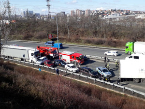 Od dnešní desáté hodiny až do odpoledních hodin zasahovaly dvě jednotky pražských hasičů u nehody tří kamionů na Jižní spojce u Záběhlic ve směru na Černý Most. Při nehodě bylo zraněno několik osob.