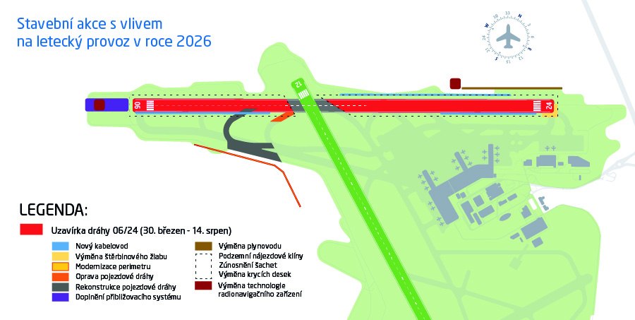 Krejčí připomněla, že do výstavby paralelní ranveje k hlavní dráze nemá letiště při takovéto uzavírce jinou možnost, než provoz převést na vedlejší dráhu. Loni v prosinci získalo letiště nepravomocné územní rozhodnutí pro výstavbu paralelní dráhy. Podle dřívějších informací letiště plánuje zahájit stavbu po roce 2030.