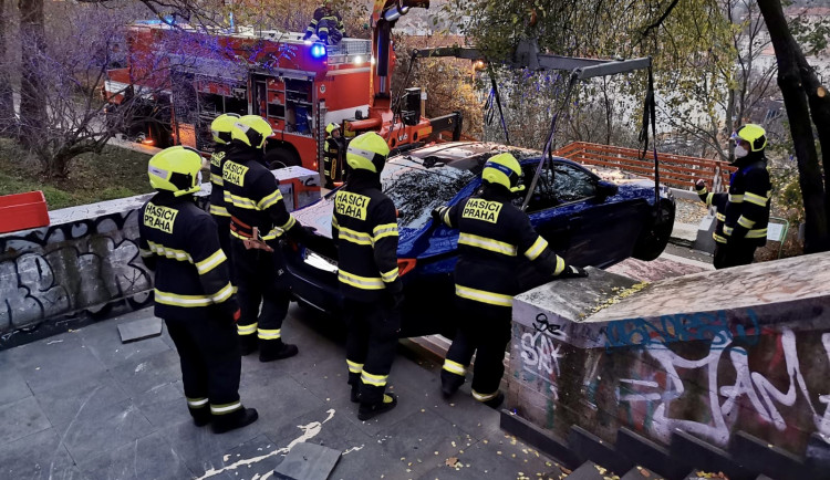 Kuriózní situaci museli řešit dnes ráno pražští hasiči. Dnes po půl sedmé zasahovali hasiči na konci ulice Lublaňská v Praze 2. Na schodech pro pěší uvízlo vozidlo. Vyprostit ho museli hasiči. Řidič odmítl testy na alkohol i na drogy.