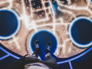 Hned u vstupu každý z nás odpovídá na otázku, která zní, zda svoje město neovlivníme, opečováváme, užíváme si jej, nebo ho nechápeme. Na tlačítku mačkáme své odpovědi a Pavla nás upozorňuje, že vlastně žádná možnost není správná nebo špatná. Pokračujeme do středu místnosti, kde k nám začne promlouvat hlas URBANIE a naskýtá se nám pohled na efektní projekci na zemi.