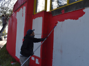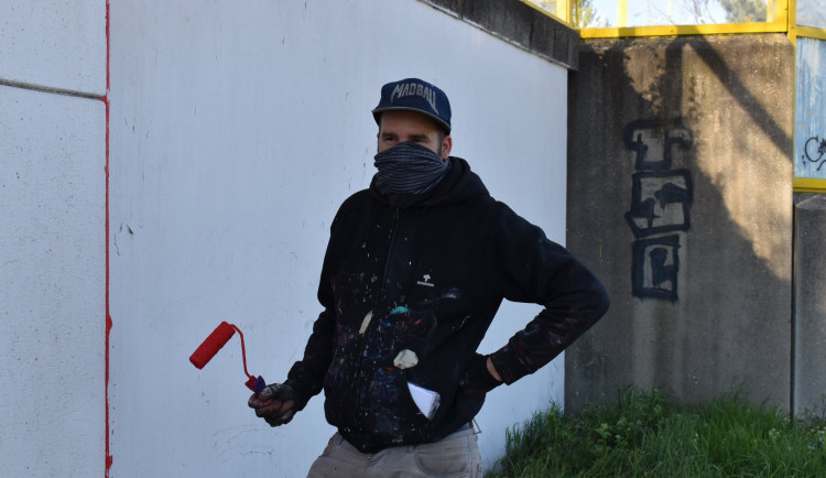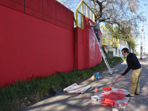 Na červený podklad podle vedení Prahy 6 během pár dnů přibudou zajímavé detaily typické pro Škapovu tvorbu, které budou vznikat i pomocí promítání na stěnu.